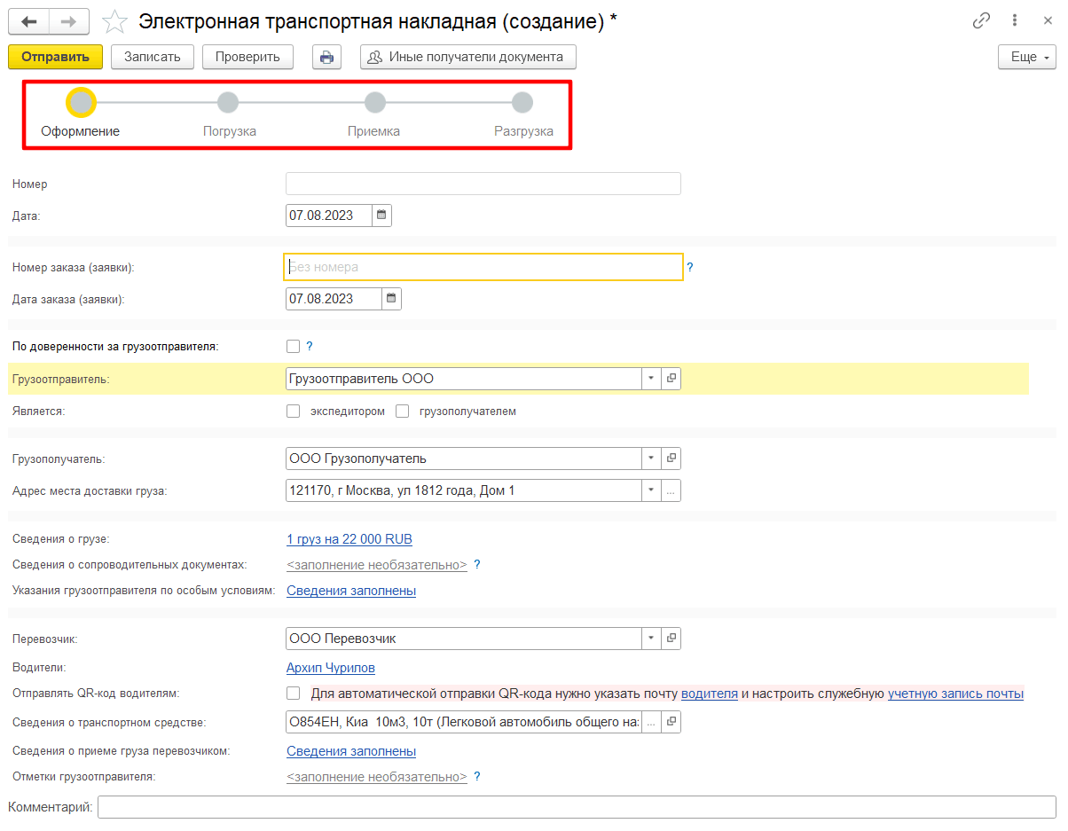 Сейчас мы последовательно рассмотрим порядок заполнения электронной транспортной накладной для каждого участника перевозки.