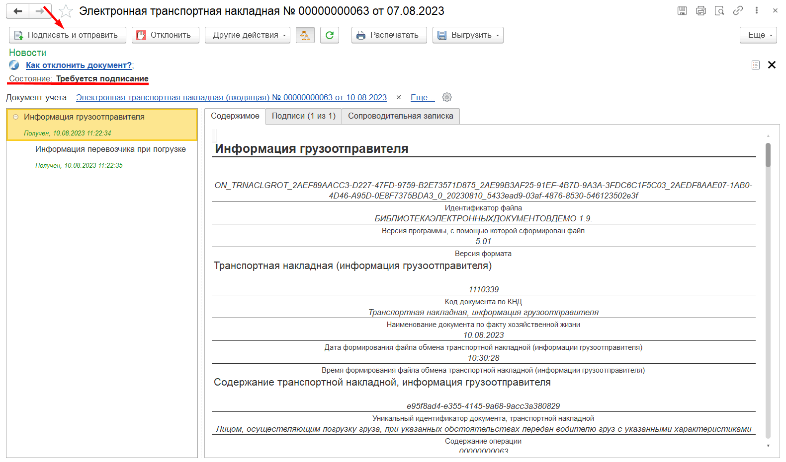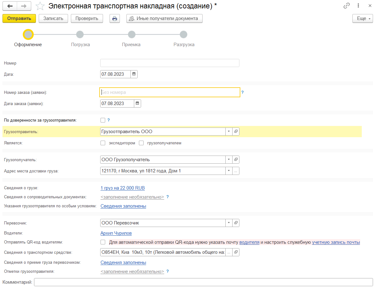 После заполнения грузоотправитель направляет сведения о перевозке (информацию грузоотправителя) перевозчику и грузополучателю.