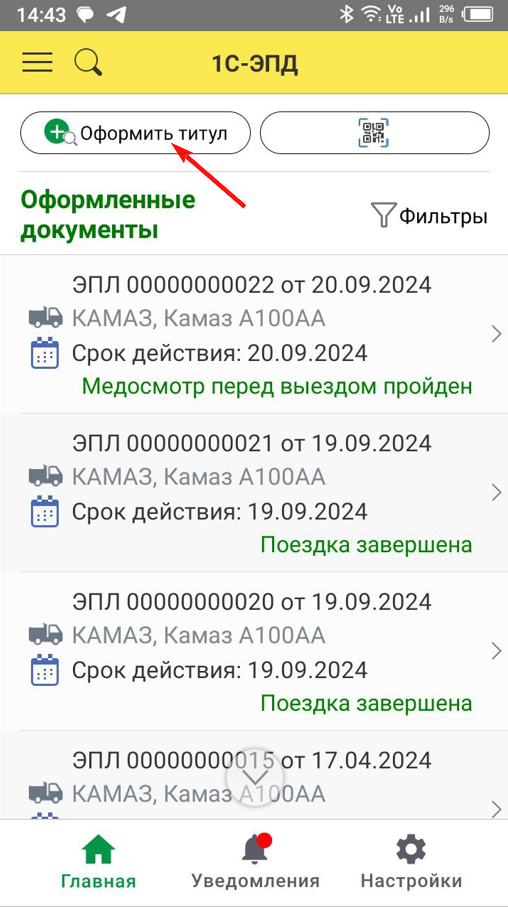Второй способ – воспользоваться кнопкой Оформить титул (рис.2) и выбрать нужный путевой лист в открывшемся списке документов (рис.3).