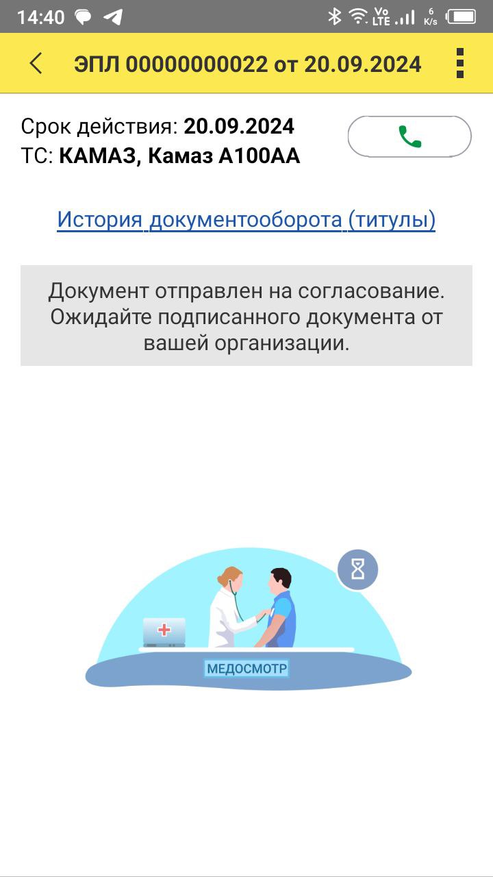 При этом документ будет отправлен на согласование сотруднику, который работает в десктопной версии программы. В мобильном приложении отобразится соответствующий статус (рис.5)