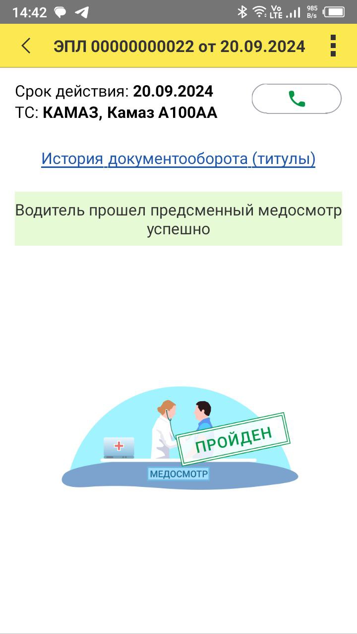 После того, как сотрудник подпишет документ КЭП в десктопной версии программы, в мобильном приложении появится информация о том, что медосмотр пройден успешно (рис.6).