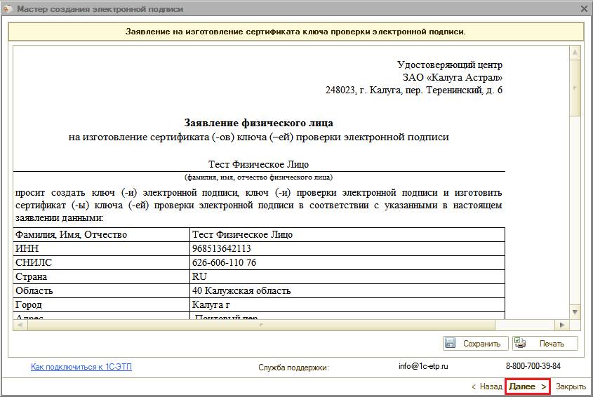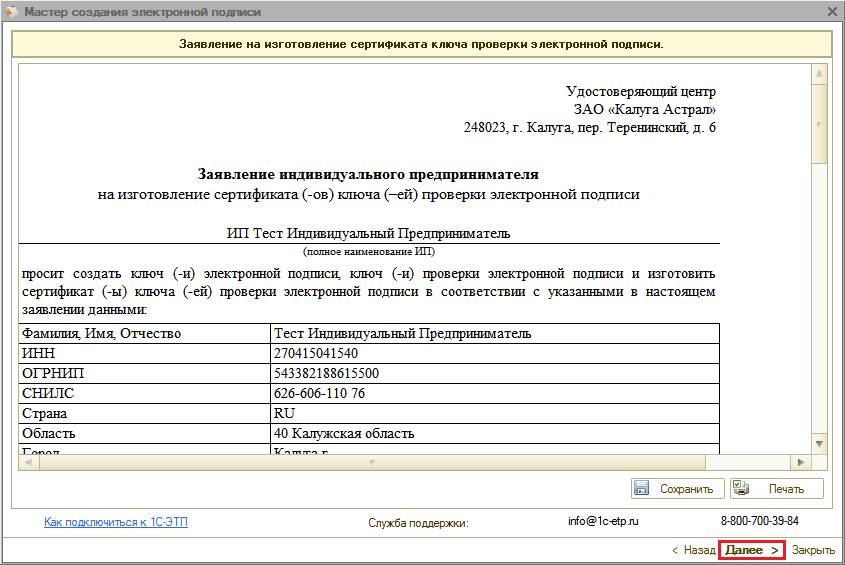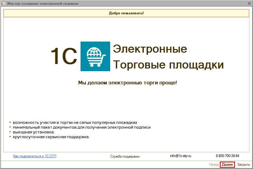 Нажмите кнопку «Далее» для перехода к следующему шагу.