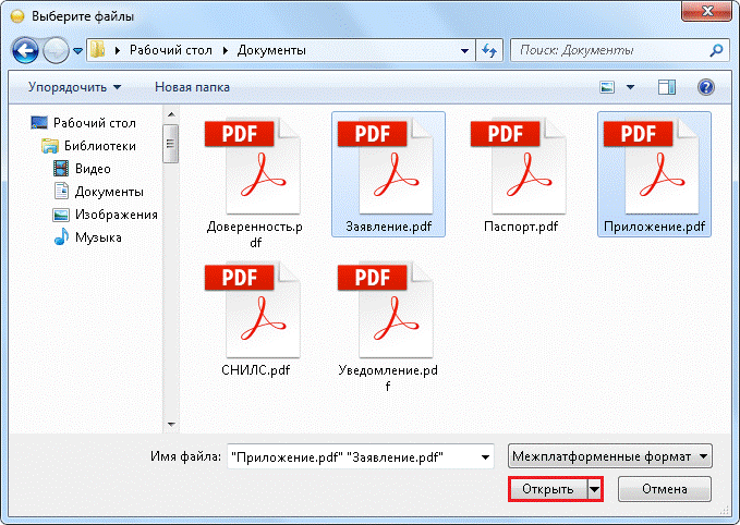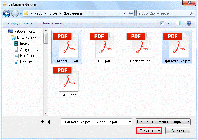 В открывшемся окне укажите путь к папке с документами, выделите один или несколько файлов и нажмите кнопку «Открыть» (рис.3.2.12.).