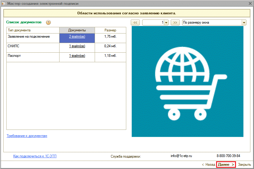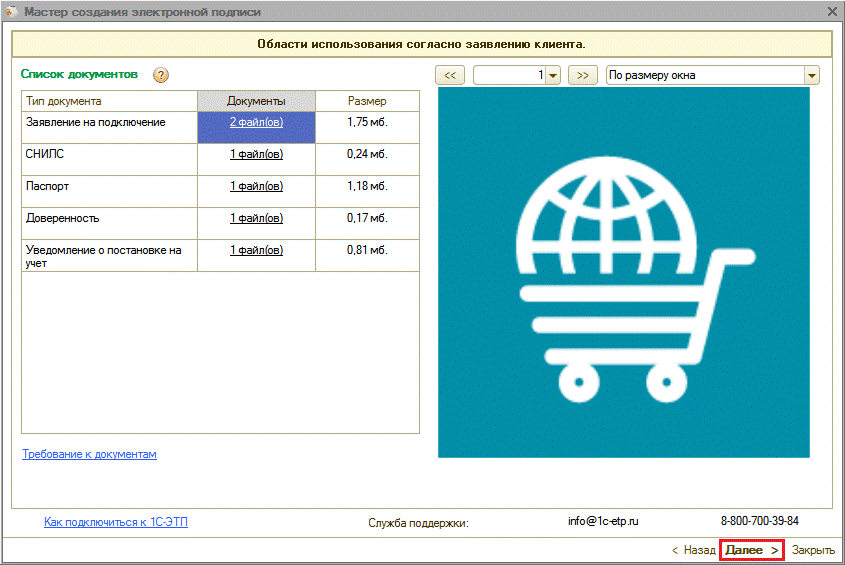 После загрузки всех документов нажмите кнопку «Далее».