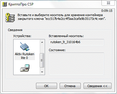 Укажите место хранения контейнера закрытого ключа и нажмите кнопку «ОК» (рис.3.3.15.).
