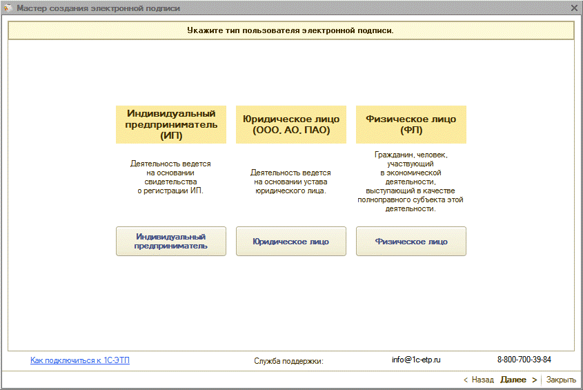 Откроется шаг выбора типа пользователя электронной подписи (рис. 3.5.).