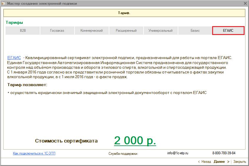 Нажмите кнопку «Закрыть», Ваша электронная подпись готова для использования в ЕГАИС.