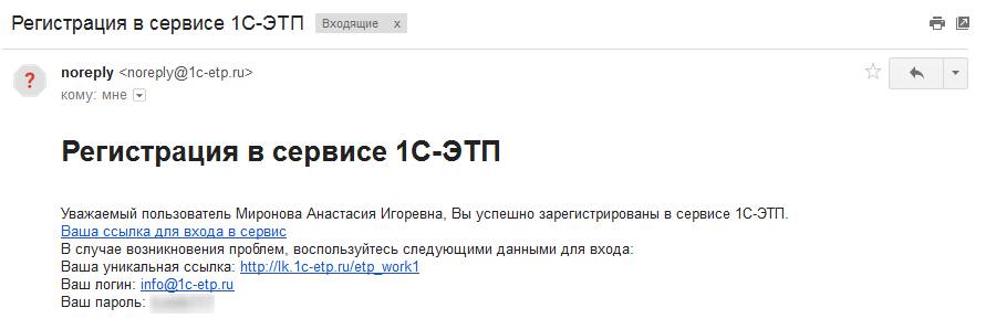 Также на указанный адрес электронной почты придет письмо с подтверждением регистрации, вход в сервис можно осуществить по персональной ссылке, указанной в письме (рис.2.5.).