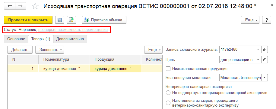 ). - Перемещение запрещено — перемещение продукции ВЕТИС запрещено