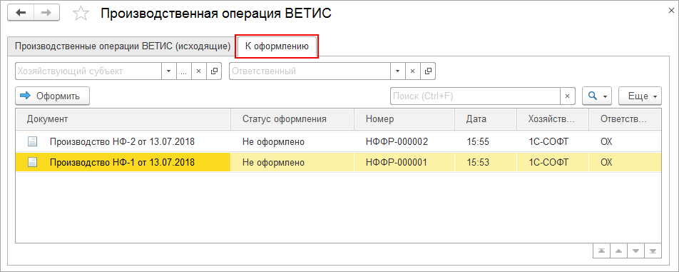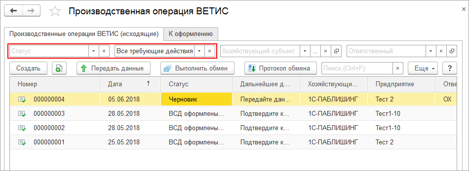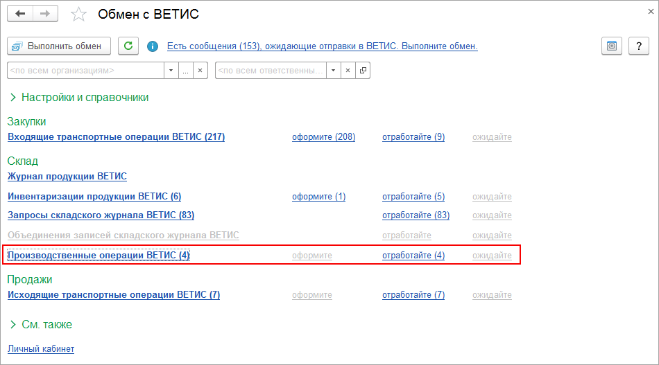Предусмотрена возможность отбора производственных операций ВЕТИС в соответствии с их статусами и действиями, которые необходимо выполнить по производственной операции ВЕТИС.