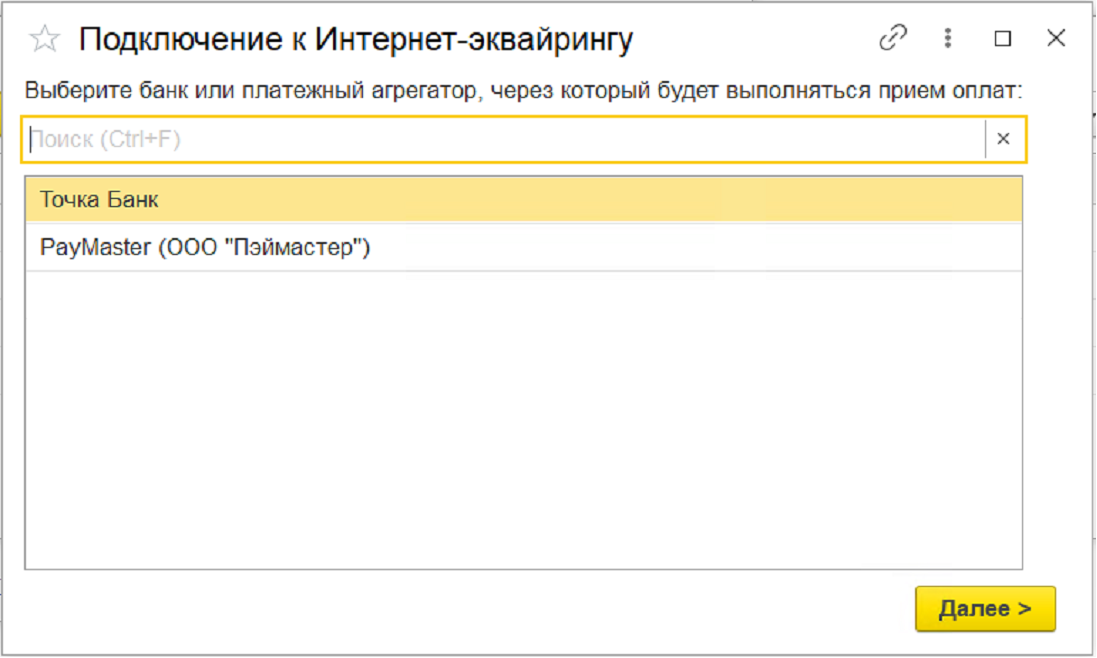 a. На первом этапе необходимо выбрать банк или платежного агрегатора, с которым поддерживается интеграция.