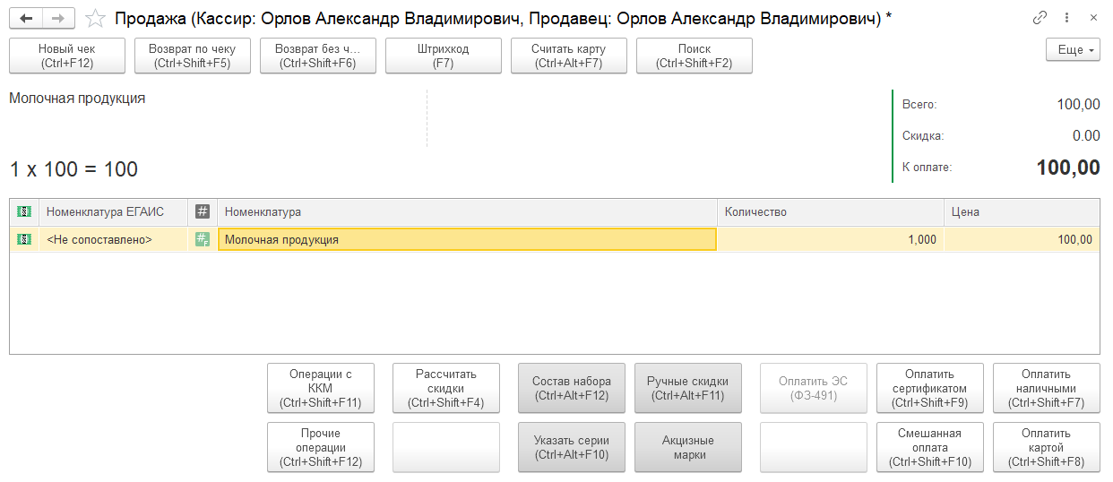 Для завершения розничной продажи необходимо пробить чек ККТ. В чеке указываются коды маркировки и результаты прохождения проверки.
