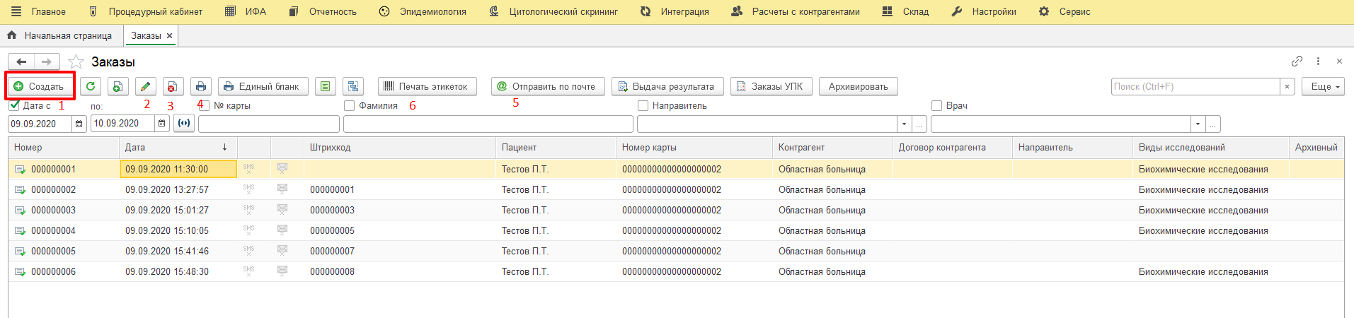 Заявки ЛИС не появятся в рабочем листе врача лаборатории, до тех пор, пока в процедурном кабинете не отметят факт забора биоматериала.