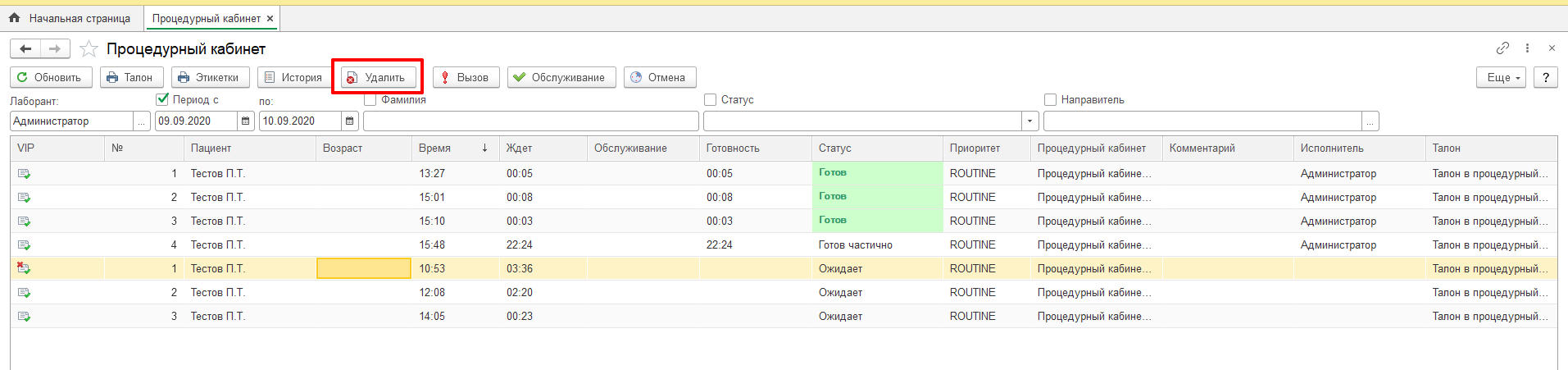 Если талон потерял актуальность его можно пометить на удаление с помощью команды «Удалить».