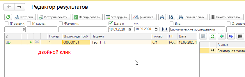 С данным функционалом непосредственно работают сотрудники процедурных кабинетов или регистраторы лаборатории. Для всех новых заказов ЛИС необходимо распечатать этикетки с штрихкодами для образцов и установить факт взятия биоматериала.