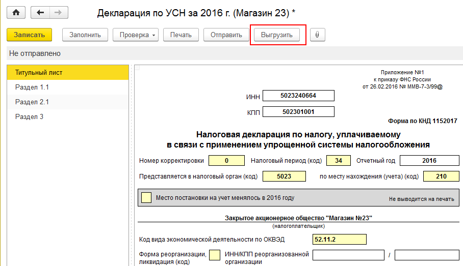 Для подготовки файла выгрузки нужно нажать кнопку "Выгрузить" в готовом отчете.