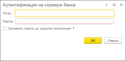 Укажите логин и пароль, чтобы пройти аутентификацию на сервере банка.