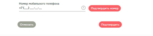3. Введите номер мобильного телефона и нажмите кнопку Подтвердить номер. На указанный номер будут приходить одноразовые пароли в виде sms-сообщений с кодом для подтверждения операций.