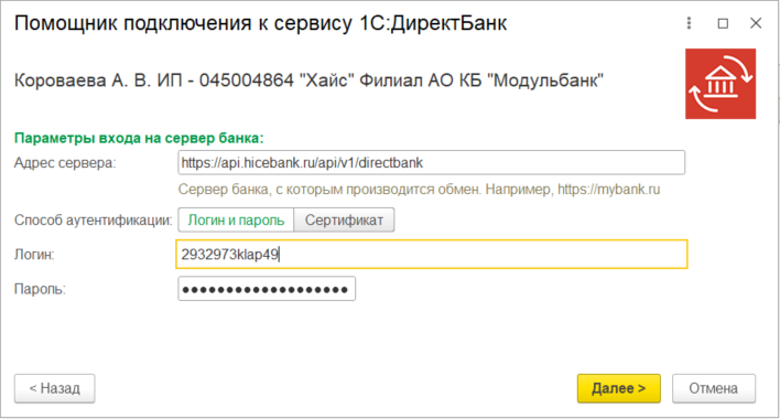 Подключение сервиса 1С:Директбанк на стороне банка
