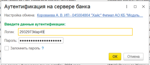3. Для передачи платежного получения в банк пройдите аутентификацию на сервере банка, указав логин и пароль.