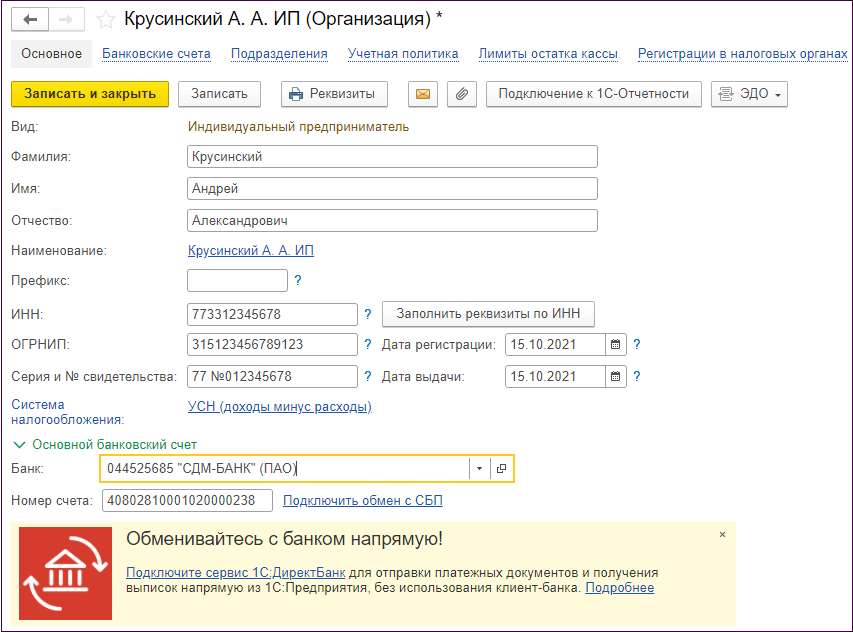 2. Выполните настройку в программе "1С:Бухгалтерия":