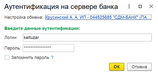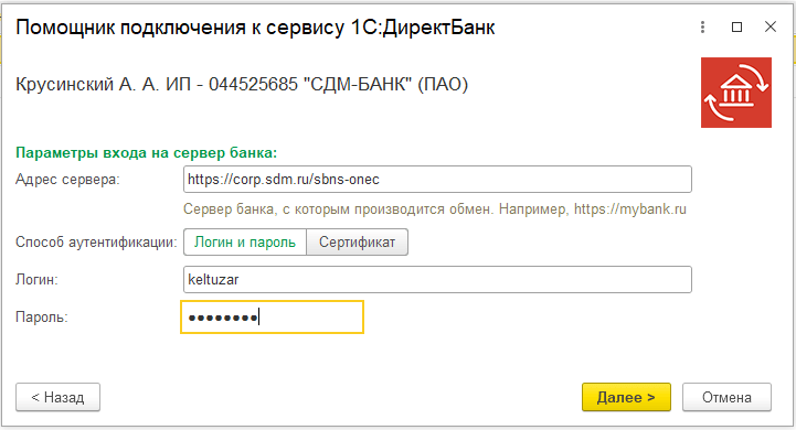 Укажите логин и пароль, чтобы пройти аутентификацию на сервере банка.