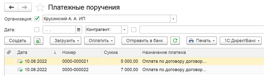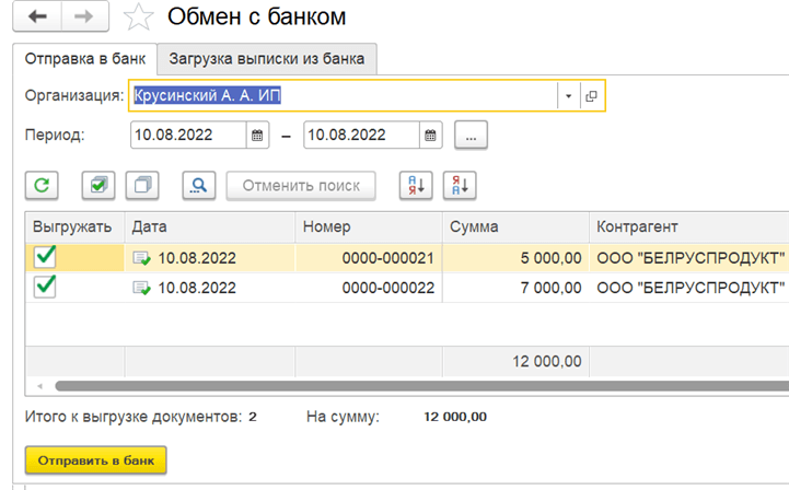 3. Для передачи подготовленных платежных получений в банк нажмите Отправить в банк.