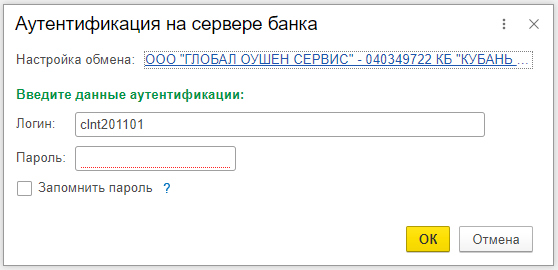 Укажите логин и пароль, чтобы пройти аутентификацию на сервере банка.