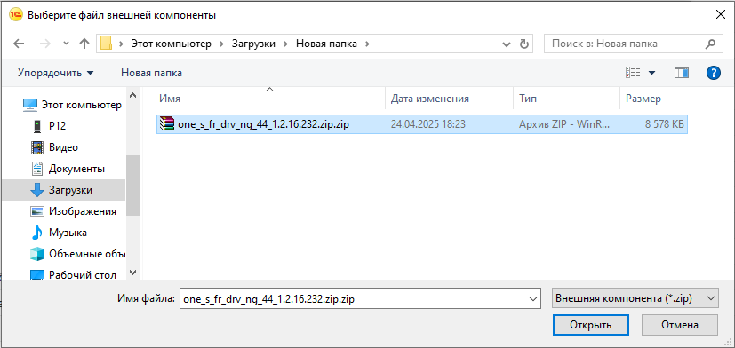 Перейти в папку, куда ранее был сохранен архив драйвера NG и выбрать его для загрузки. Переименовать драйвер по необходимости. После нажать кнопку Записать и закрыть.