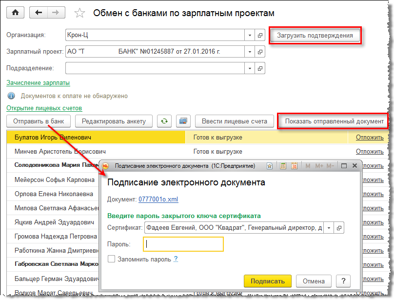 Начиная с версии 3.1.1 технология DirectBank расширена и на обмен информацией с банками в рамках зарплатных проектов.
