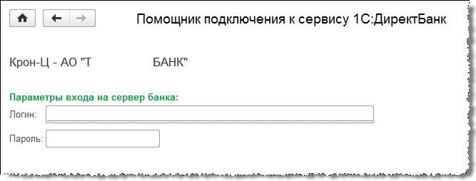 При подключении к банку, который полностью поддерживает возможности сервиса 1С:ДиректБанк, на следующем шаге помощника указываются параметры входа на сервер банка для загрузки с него необходимых настроек. Эти параметры следует уточнить в банке.