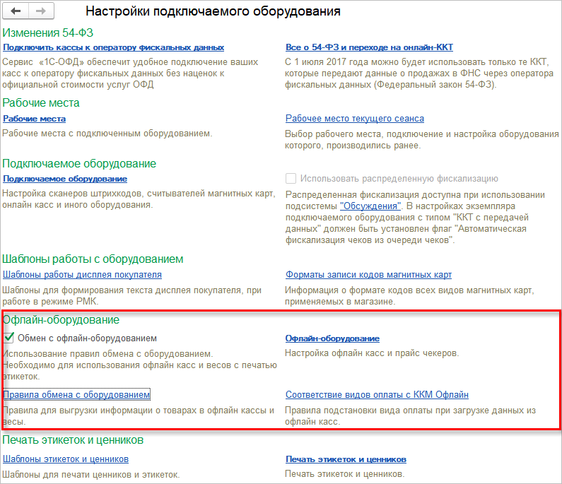 Для подключения устройства печати в меню Настройки - Подключаемое оборудование выбираем Устройство печати.