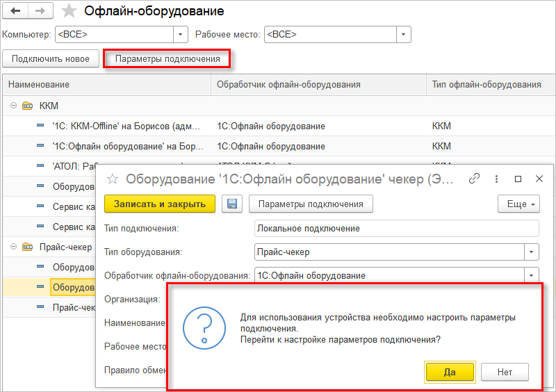В форме настроек экземпляра подключаемого оборудования нужно заполнить следующие поля: