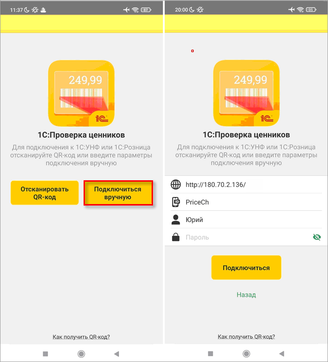 В сценарии работы с программой 1С:Розница недоступен способ авторизации с помощью QR-кода.