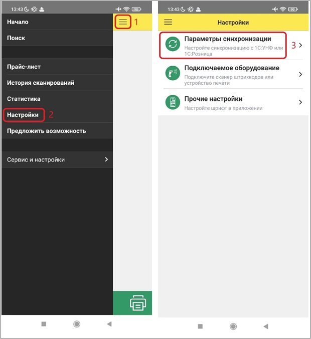 Настройки подключения и параметры синхронизации в 1С:Розница.