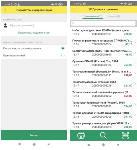 В этом режиме после сканирования штрихкода цена для сравнения берется из «1С:Розницы», поэтому требуется постоянное подключение. Прайс-лист формируется на основе отсканированных позиций.