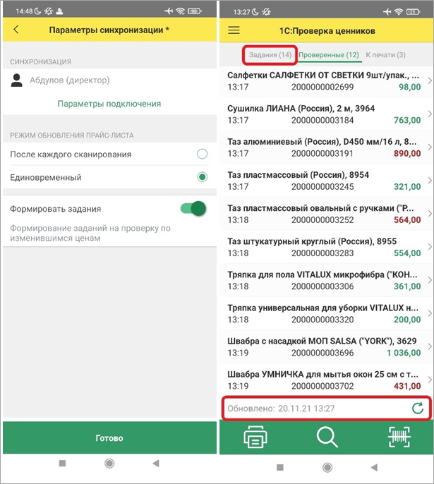 Ценники, отмеченные правильными, будут выделены зеленым цветом, неправильные – красным.