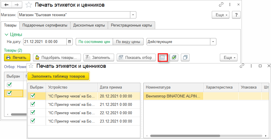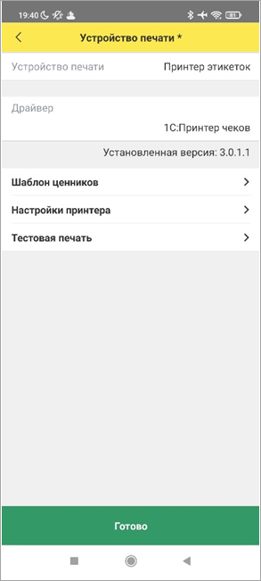 Если устройство печати не выбрано, то приложение передает ценники в «1С:Розницу».