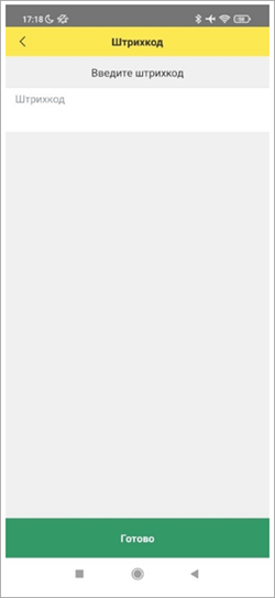 По команде Ручной ввод штрихкода открывается форма ввода штрихкода с помощью клавиатуры устройства.
