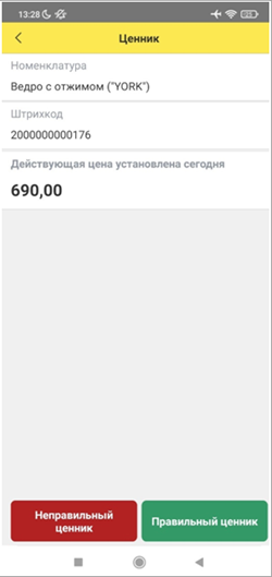 На форме доступны две команды: Правильный ценник и Неправильный ценник.