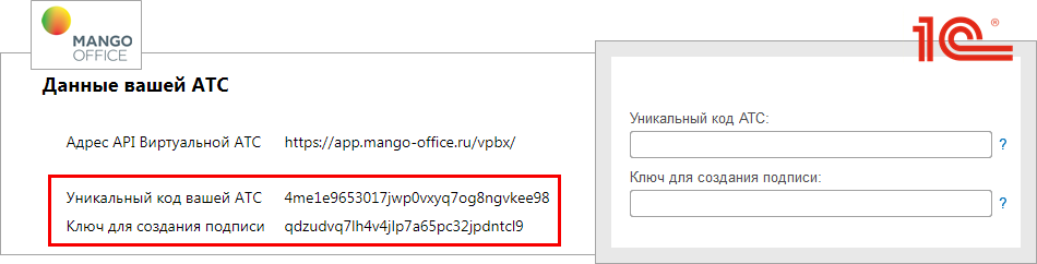 Скопируйте данные из 1С и вставьте в настройки интеграции.