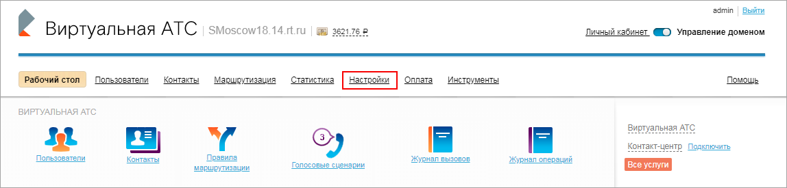 Данные для заполнения можно получить в личном кабинете виртуальной АТС Ростелеком (https://cloudpbx.rt.ru/login/).