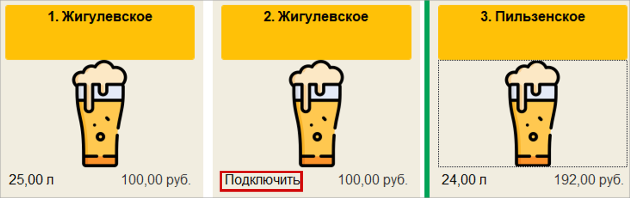 В программе существует возможность подключить плиточный интерфейс для работы с кранами. На каждой плитке будет отражаться название пива в кране и остаток.
