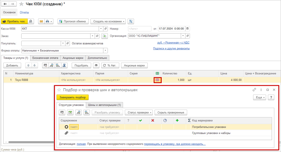 Если опция не активирована, то можно выбрать код маркировки вручную, открыв форму уточнения данных двойным щелчком по иконке с маркой.