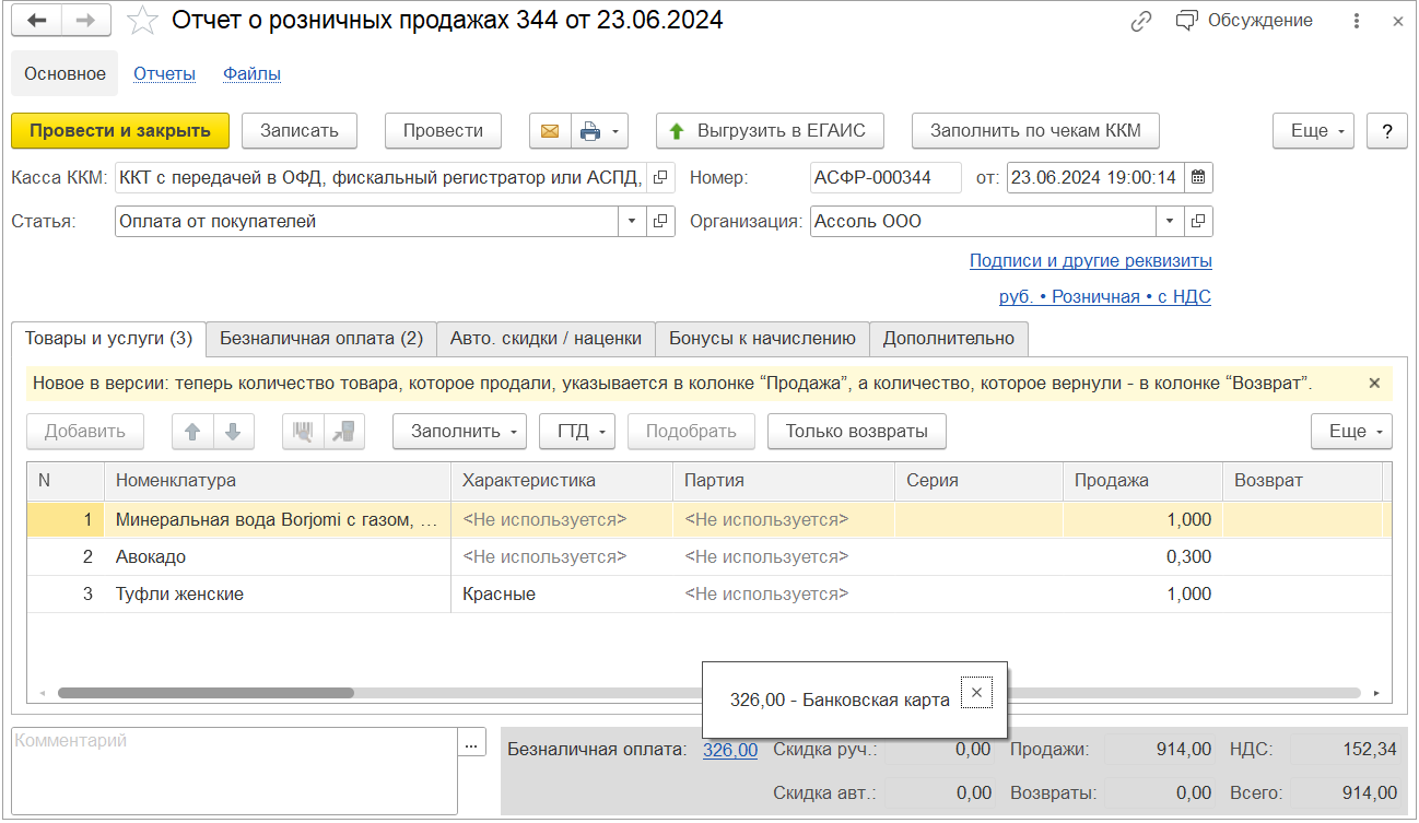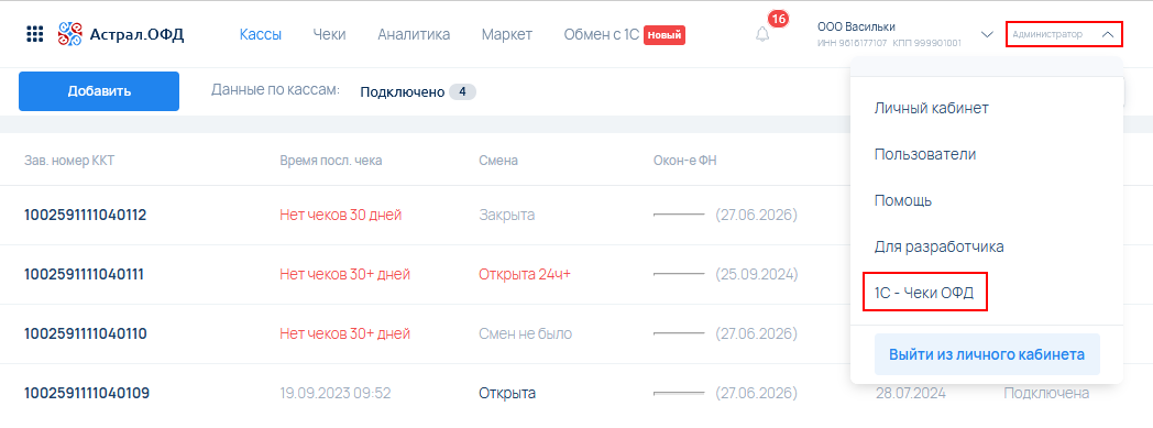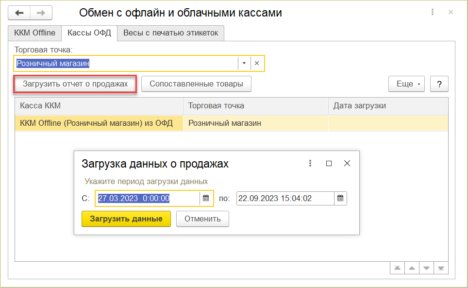 Загрузка Отчетов о розничных продажах и сверка продаж с помощью сервиса "1С-Чеки ОФД"