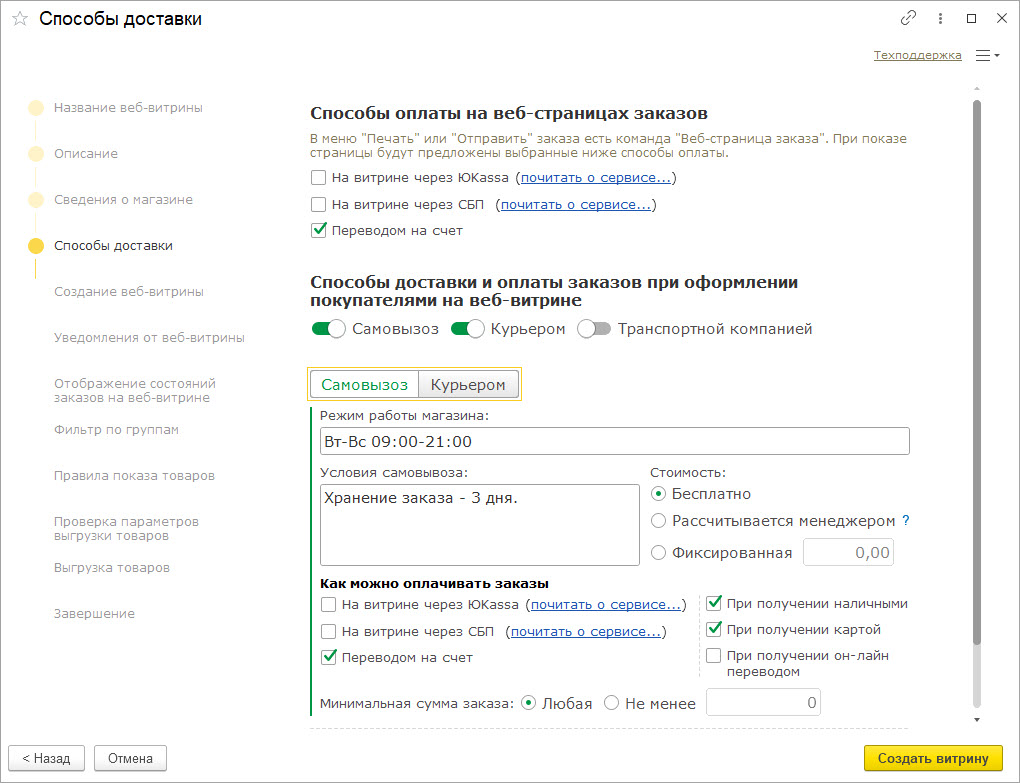 На веб-витрине доступны несколько способов оплаты заказа: