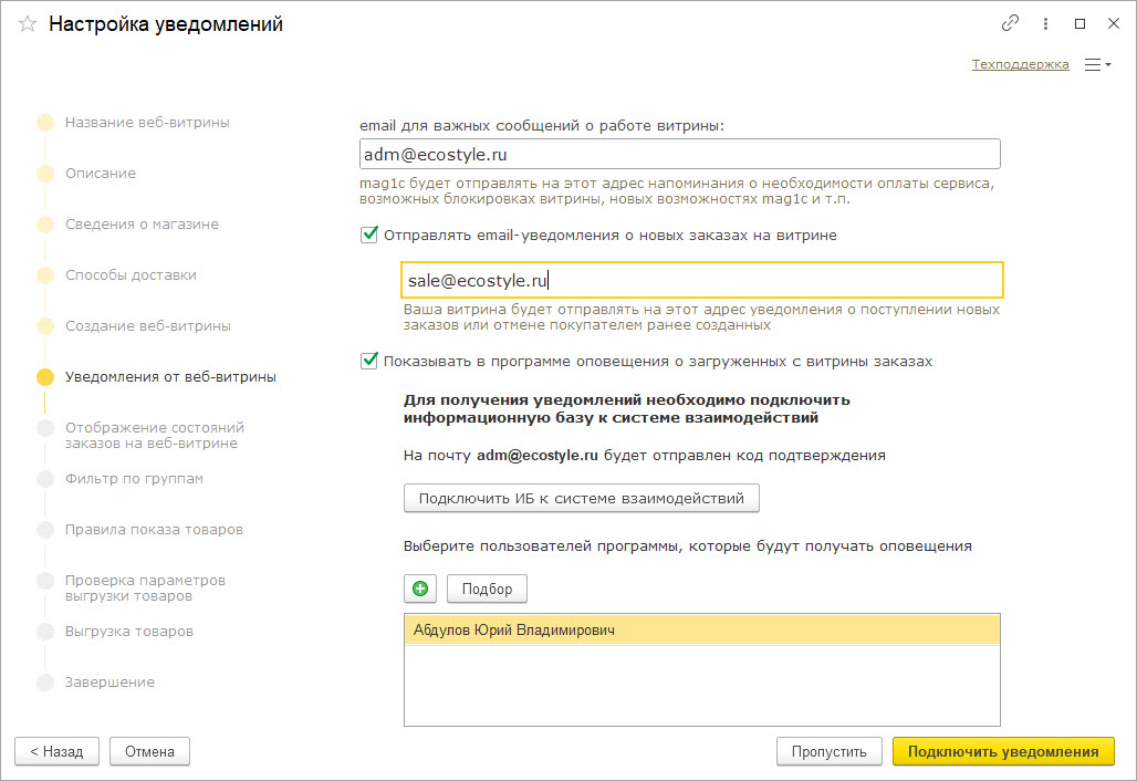 6. Уведомления от веб-витрины