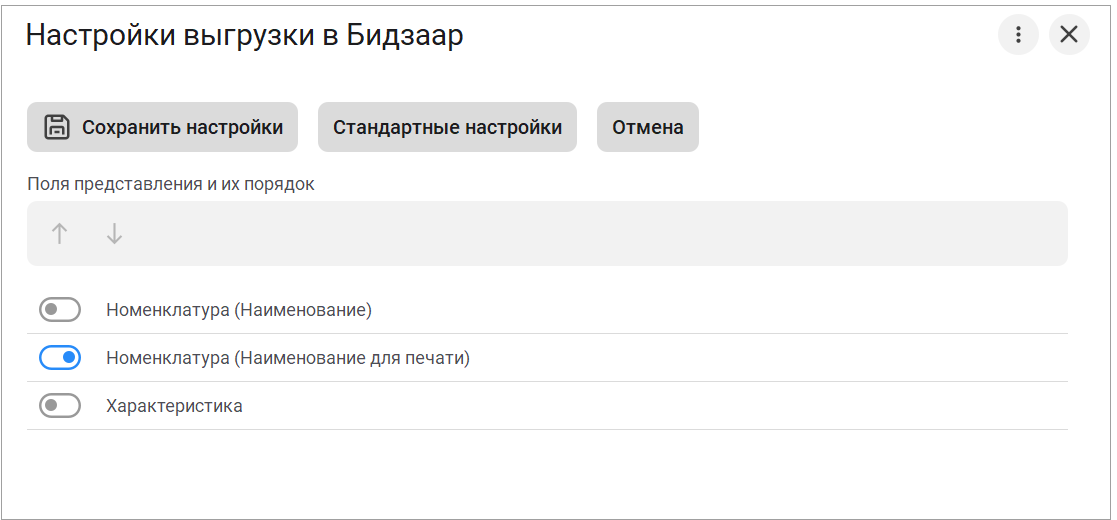 Настройте порядок и состав полей для выгрузки по кнопке с шестеренкой. При помощи переключателей выберите, какие поля требуется отобразить. По кнопкам с изображением стрелок настройте порядок их отображения. Нажмите "Сохранить настройки".