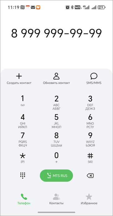 После этого откроется стандартное окно звонка мобильного телефона и можно совершить звонок.
