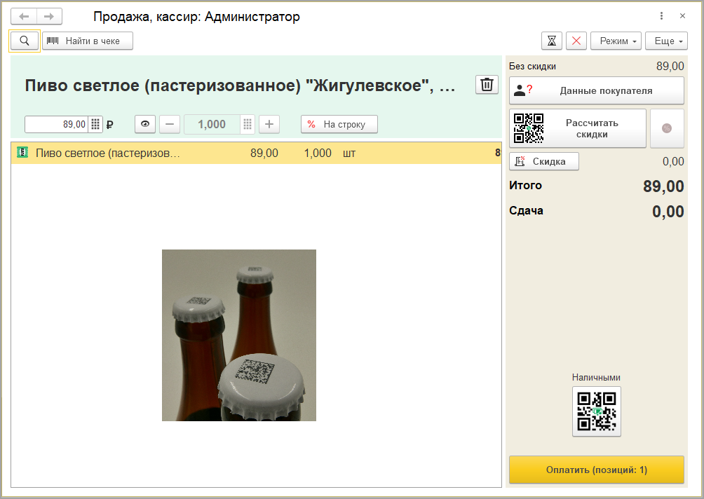 Теперь все готово для того, чтобы продавать и маркированное, и немаркированное пиво в рабочем месте кассира.
